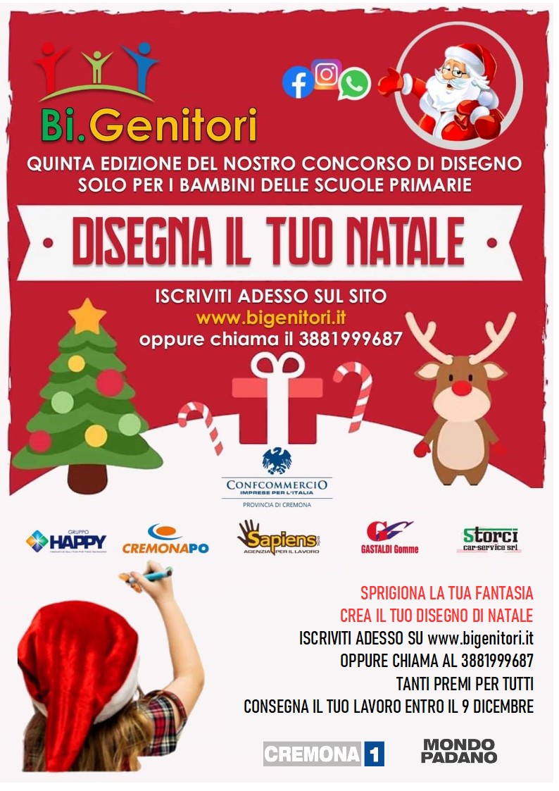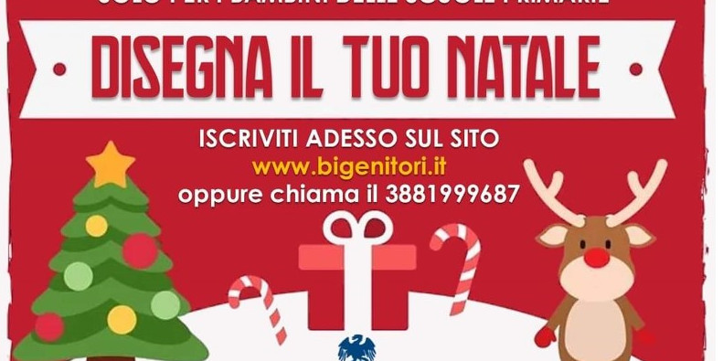 dedicata del sito: www.bigenitori.it Tutti i disegni dovranno essere fatti su un foglio d’album A4 e consegnati entro il 9 dicembre. Come da tradizione la premiazione finale sarà qualche giorno prima di Natale. Per tutte le informazioni potete chiamare il numero 388.1999687 o scrivere email a: eventi@bigenitori.it