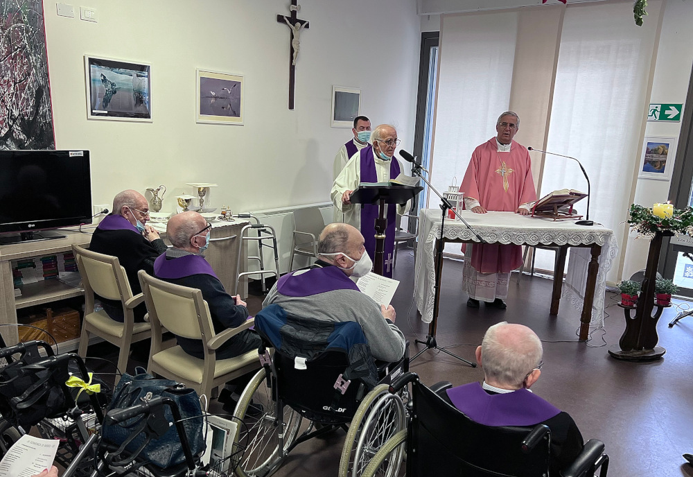 Si è svolta nella mattinata di domenica la messa di Avvento alla casa di riposo Giovanni Arvedi e Luciana Buschini, celebrata dal vescovo Antonio Napolioni, che ha affiancato don Luigi Mantia, assistente spirituale della Rsa. Presenti anche i sacerdoti ospiti della casa di riposo. Un momento solenne e di raccoglimento ma anche un’occasione per uno scambio di auguri in vista del Natale. Moltissimi gli ospiti e i parenti presenti nella sala.