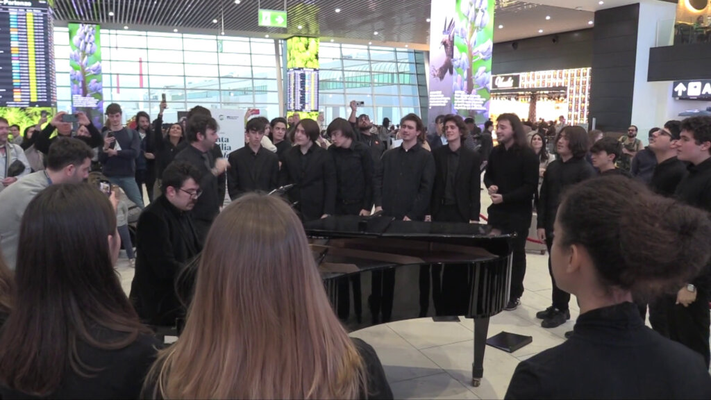 ROMA (ITALPRESS) – L’accademia di Santa Cecilia vola a Fiumicino. L’aeroporto di Roma si è trasformato occasionalmente in un auditorium, ospitando nella cornice della “Piazza” dell’area di imbarco A per i voli nazionali e Schengen del Terminal 1, un flash mob organizzato dai giovani talenti della Cantoria dell’Accademia.