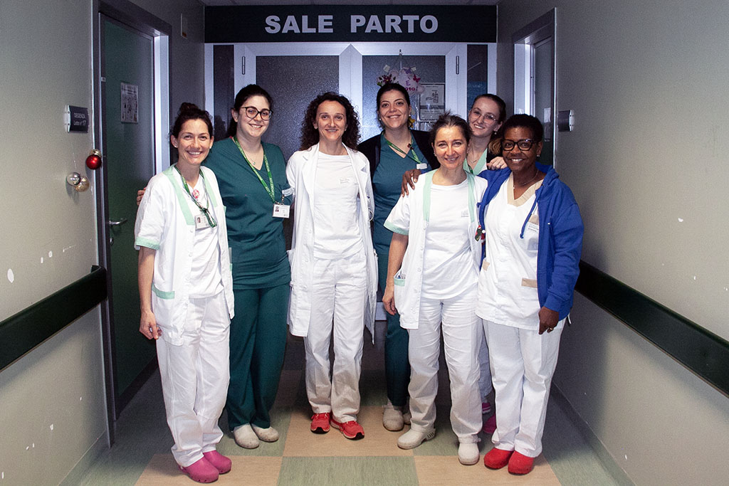 Bernardo con la madre, la dottoressa e le ostetriche Fotoservizio Francesco Sessa