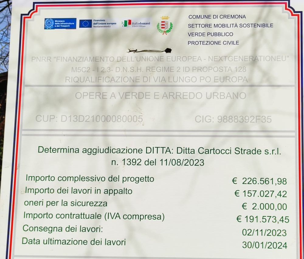 Tra i tanti cantieri in corso a Cremona è iniziato anche quello relativo al restyling di Lungo Po Europa, nel tratto tra la canottieri Flora e il ponte sul Po.