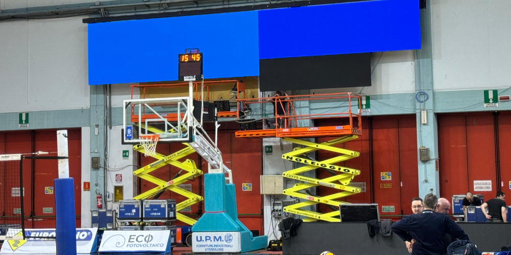 Da mercoledì l’azienda Dna Communication di Ghedi ha iniziato a montare il ledwall di 11 metri per 3, che coprirà la parete nord del palazzetto. Un notevole upgrade sia in termini estetitici che tecnologici. Alle porte un week end che farà da battesimo di fuoco per il tabellone che deve essere tassativamente pronto la mattina del sabato, si parte infatti nel pomeriggio con il match tra Ferraroni Juvi Cremona e Gruppo Mascio Treviglio in programma alle ore 18:00.
