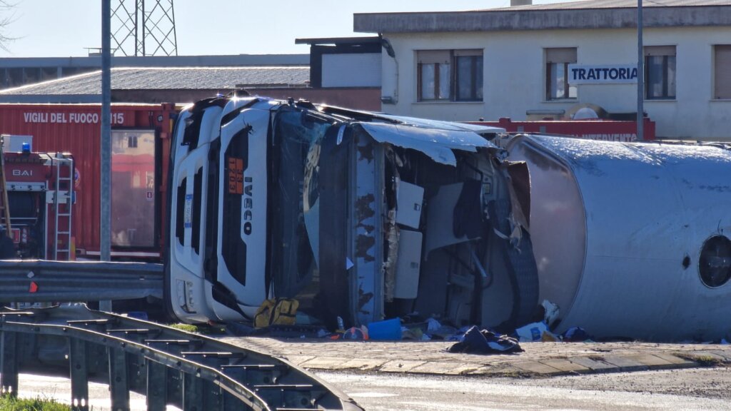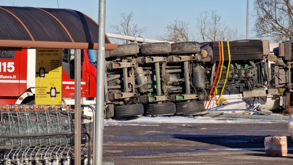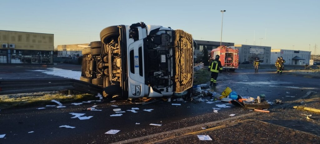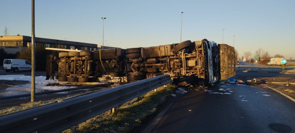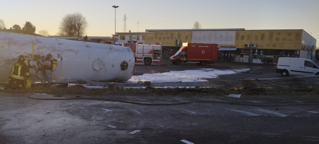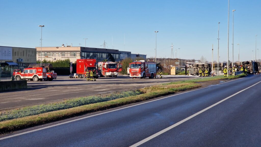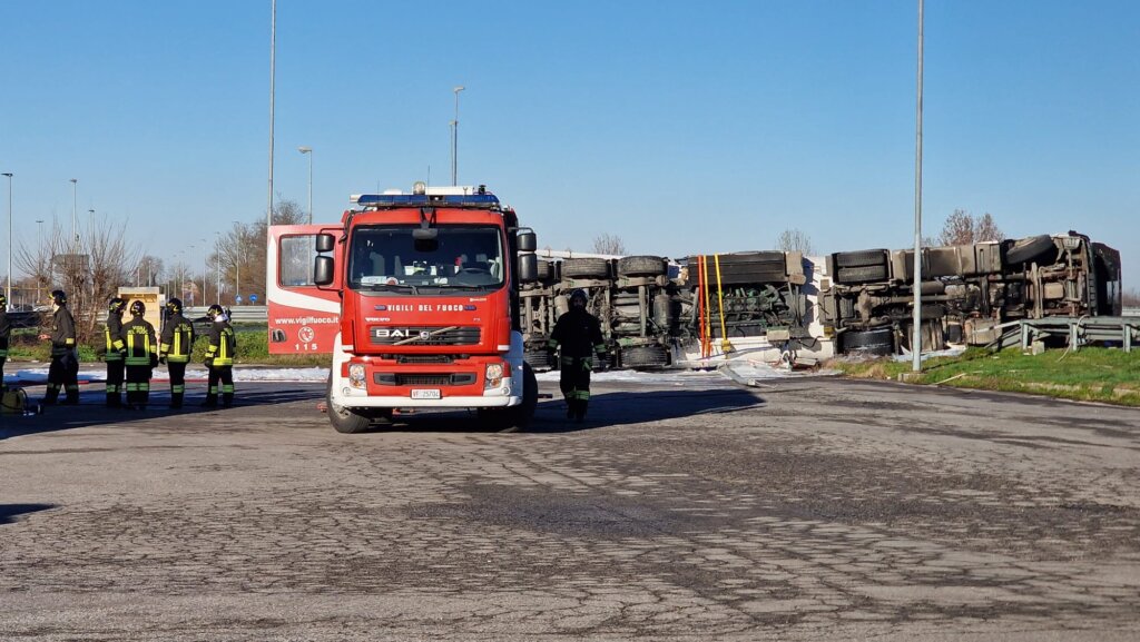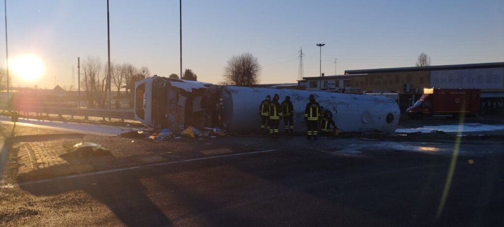 Piadena: autocisterna si ribalta