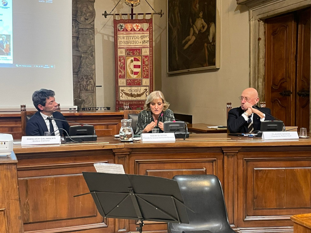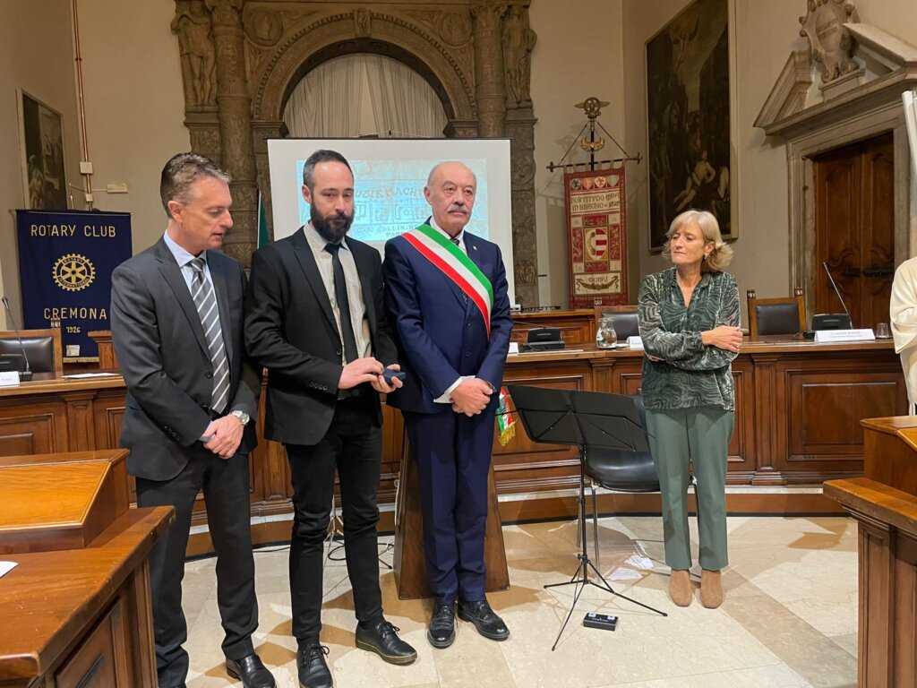 Dopo la visita di Soncino È giunta a cremona invitata dal Rotary, Noemi di Segni Presidente dell’Unione Comunità Ebraiche. Nel salone del consiglio si è voluto ricordare la giornata della memoria grazie anche alla voce del violino della Shoah suonato dalla violinista Alessandra Sonia Romano, musicista di fama internazionale.