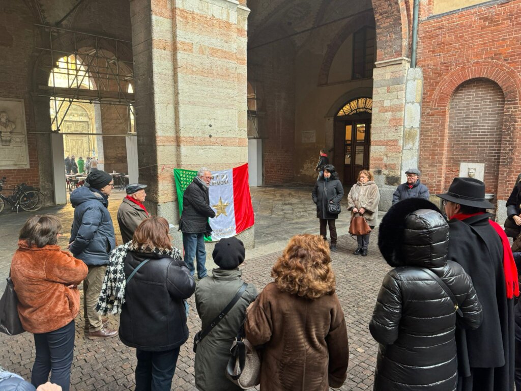 Nel pomeriggio di sabato, alle 16 in cortile Federico II a Cremona l’appuntamento del Comitato provinciale dell’Anpi: un raduno attorno alle pietre d’inciampo di palazzo comunale, cui ha partecipato qualche decina di persone.