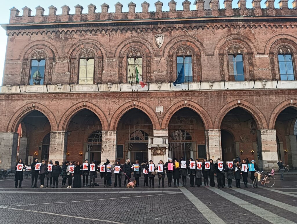 Flash mob per reclamare l’urgenza della pace in Palestina, sabato pomeriggio in piazza del Comune a Cremona, da parte di un ampio gruppo di donne che hanno aderito all’appello di “Mamme da Nord a Sud” e “Donne in cammino per la pace”, su iniziativa di Paola Tacchini.
