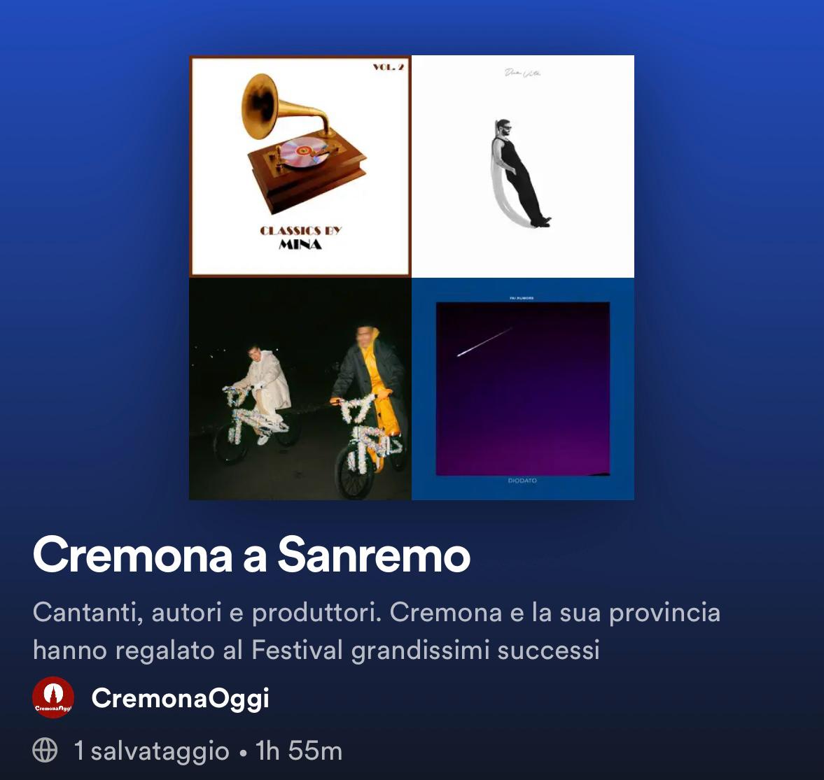 “Cremona a Sanremo” è disponibile su Spotify: per trovarla e ascoltarla basta digitare “CremonaOggi” nella barra delle ricerche. Due ore di musica italiana selezionate da Giovanni Rossi, che vi accompagneranno tra passato e presente e che, da mercoledì, si arricchiranno di ulteriori brani: delle trenta canzoni in gara a Sanremo 2024, infatti, addirittura nove “parlano cremonese”.