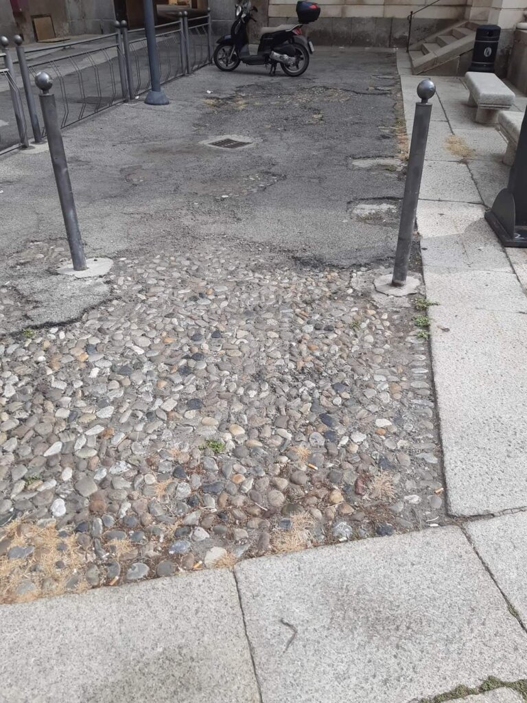 Mi pare non più rinviabile una sistemazione e chiedo cortesemente un intervento risolutore. Visto il contesto, propongo di riportare alla luce la pavimentazione in acciottolato.