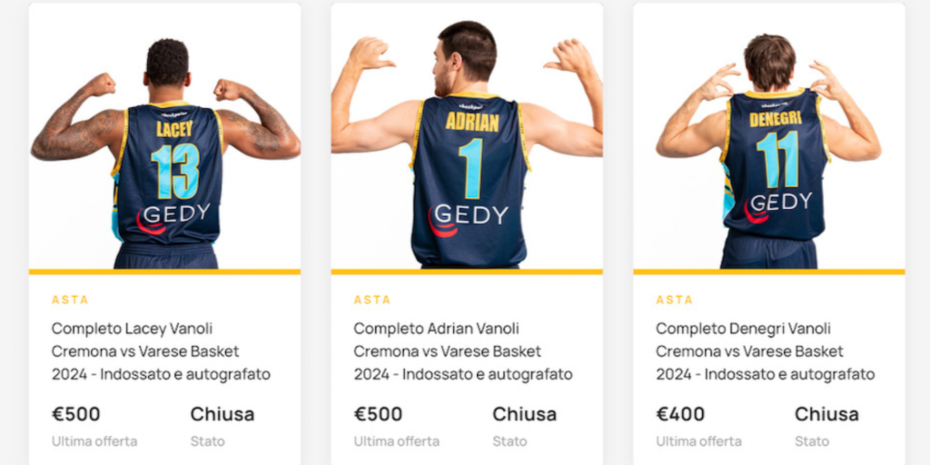 Valutazioni altissime per le maglie di Adrian e Lacey, vendure a 500€, 400 sono stati offerti per la canotta di Davide Denegri, mentre hanno superato i 200 euro le divise di Golden, Eboua, Zegarowski e capitan Pecchia. mc.copp