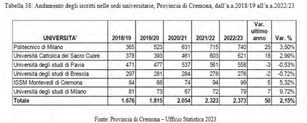 “Il rapporto parte dalle dinamiche demografiche – ha spiegato il prof. Triani – è un dato non confortante come si può notare dai dati, con un -6,62% nel comune di Cremona, -5,92% in provincia e -2,08% in regione“.