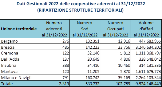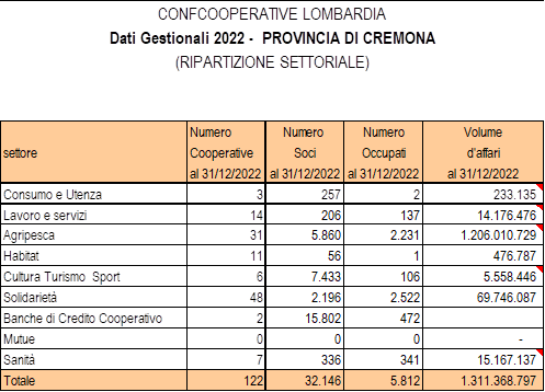 I NUMERI DI CONFCOOPERATIVE CREMONA