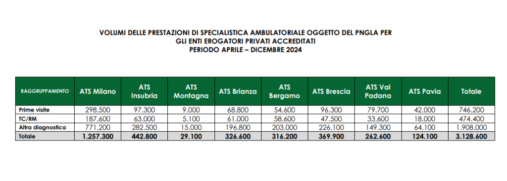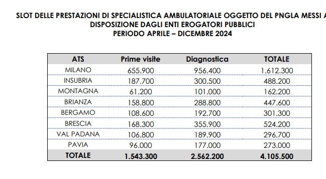 Nel dettaglio, le strutture pubbliche dovranno effettuare 4,1 milioni di prestazioni, i privati accreditati 3,1 milioni. Dei 7 milioni totali, 2,8 milioni di prestazioni dovranno essere garantite nell’area dell’Ats di Milano.