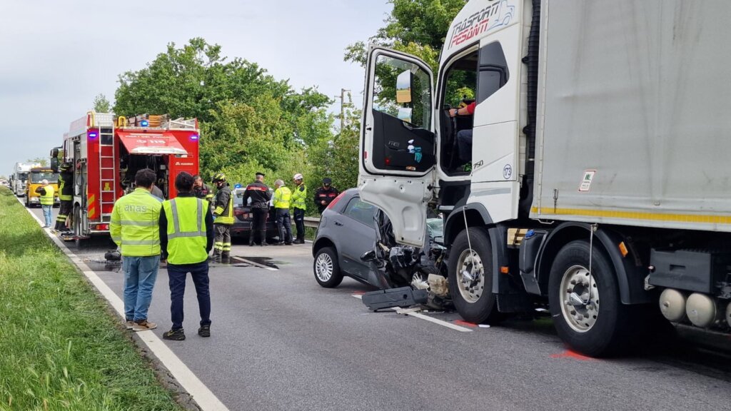 Tragico incidente mortale nella mattinata di lunedì a San Giovanni in Croce, lungo la statale Asolana, in un punto già teatro in passato di diversi incidenti gravi. Da una prima ricostruzione si tratterebbe di uno scontro frontale tra un’auto e un camion. Sul posto ci sono Carabinieri e Vigili del Fuoco: il traffico lungo la strada Asolana è bloccato in quel punto.