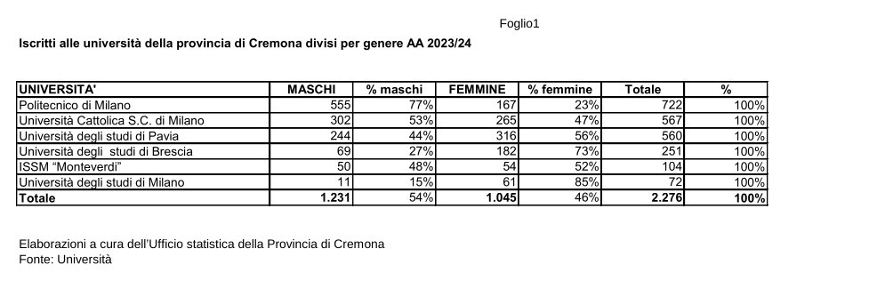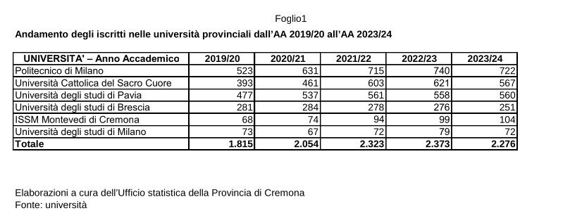 L’Ufficio Statistica della Provincia di Cremona ha elaborato i dati relativi agli studenti iscritti nelle sei università con sede sul territorio provinciale nell’anno accademico 2023/2024, analizzando in particolare numero, caratteristiche, provenienza e scelta degli indirizzi di studio.