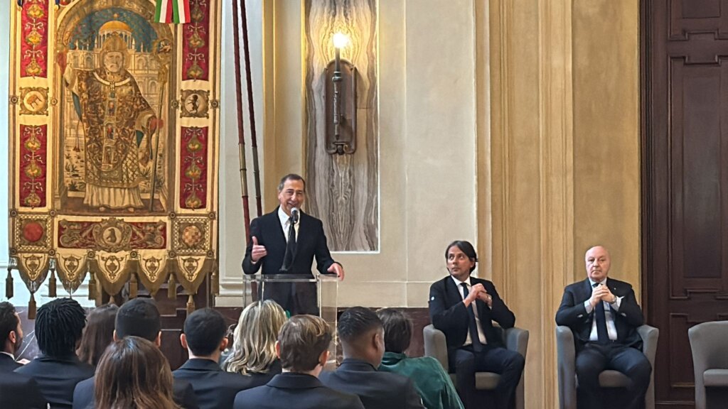 Bocche cucite per tutti i calciatori tranne per il capitano Lautaro Martinez che ha preso la parola durante cerimonia ufficiale. I ringraziamenti di rito a società e compagni e naturalmente ai tifosi che sono accorsi numerosi all’esterno di palazzo Marino per sostenerli.