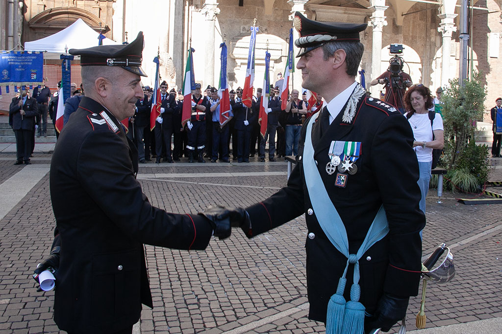 Il comandante ha quindi ricordato la storia dei carabinieri martiri di Fiesole, Alberto La Rocca, Vittorio Marandola e Fulvio Sbarretti. “Le gesta dei martiri di Fiesole rimandano al modello organizzativo dell’arma ed al suo viscerale rapporto con le comunità affidatele, reso possibile dalla capillare presenza delle stazioni carabinieri” ha spiegato Samnbataro. “La provincia cremonese ne annovera ben 27, alle dipendenze di 3 comandi compagnia, con una competenza estesa ai 113 comuni del territorio. Sovente, questi reparti costituiscono l’unico presidio dello stato preposto in loco alla tutela della legalità e delle regole della civile convivenza”.