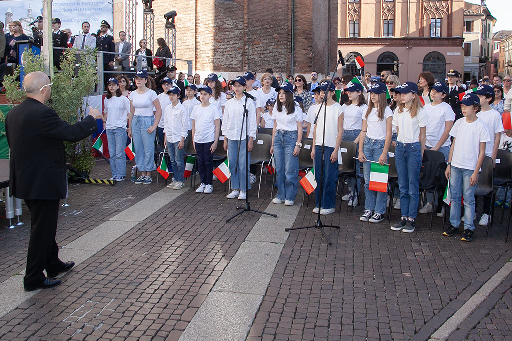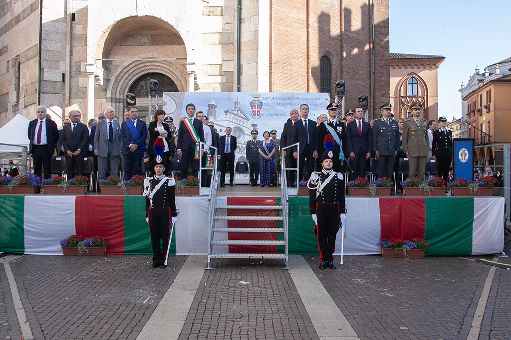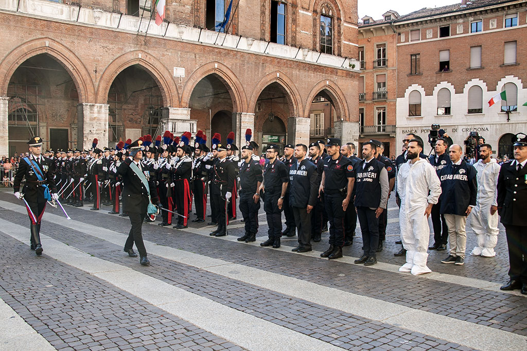 La cerimonia è iniziata con l’afflusso dei Labari delle associazioni combattentistiche e d’Arma, dei Gonfaloni del Comune e della Provincia di Cremona. E’ poi salito sul palco il comandante provinciale, il colonnello Paolo Sambataro, che ha passato in rassegna lo schieramento, seguito dal comandante del rep Formazione, il colonnello Massimiliano Girardi.