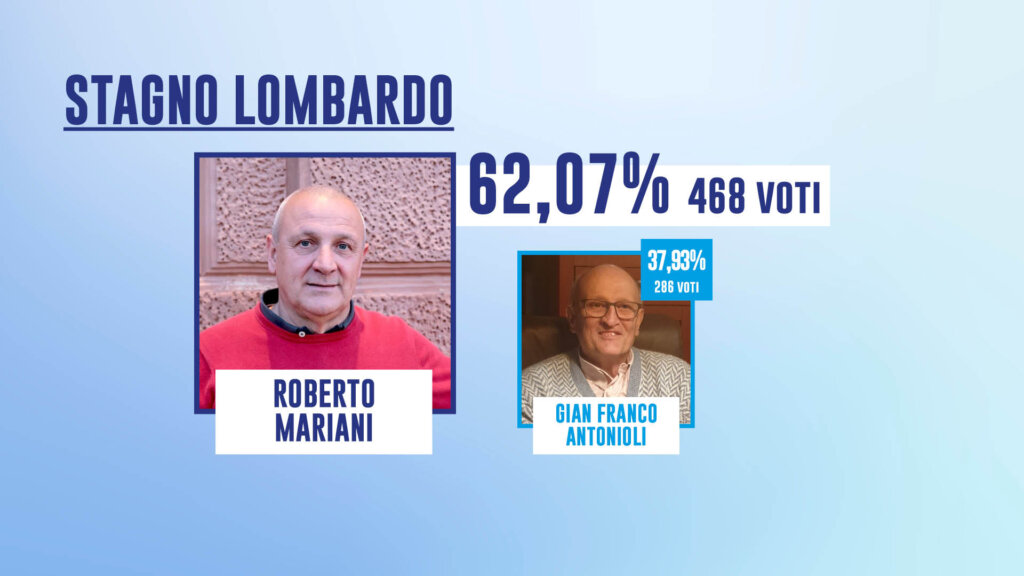 A Stagno Lombardo Roberto Mariani resta sindaco. E’ il terzo mandato consecutivo. “La maturità degli elettori di Stagno è stata grandissima”, le sue prime parole. “La campagna elettorale non è stata bella, fatta non sul merito ma su attacchi personali, ma gli elettori di Stagno hanno dimostrato con il loro voto di saper distinguere e di apprezzare il lavoro che è stato fatto”.