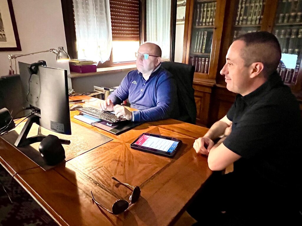 Alessandro Portesani nello studio di Ugo Carminati: è da qui che il candidato del centrodestra sta seguendo le operazioni di scrutinio per poi raggiungere la propria sede elettorale di via Manzoni.