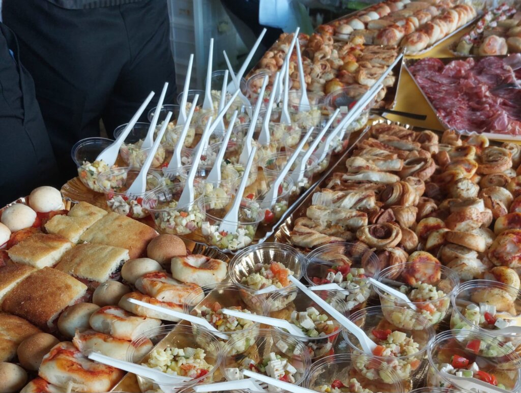 Il menu ha incluso una varietà di prelibatezze dolci e salate, come porchetta, focaccine, pizzette, panini, salumi, formaggi, insalata di riso con primo sale, tiramisù, tartellette, fiamme al cioccolato e spiedini di frutta. Un momento clou della serata è stata la presentazione di una torta decorata a tema per celebrare l’occasione.