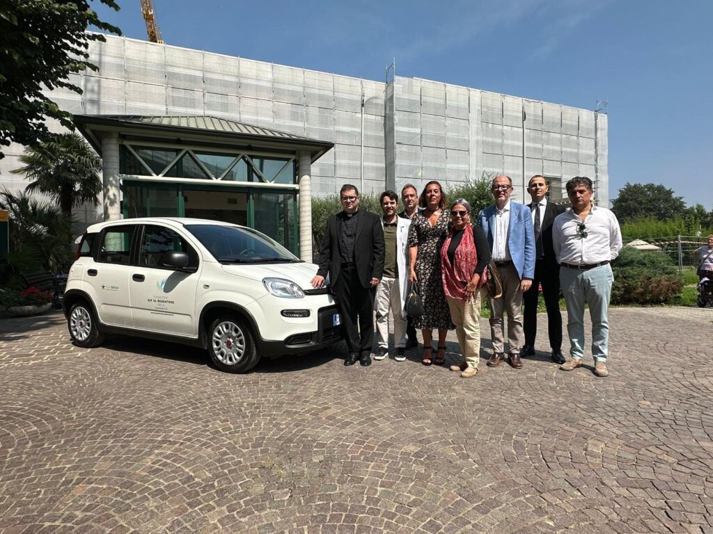 Dopo il pulmino attrezzato per il trasporto dei disabili, una nuova donazione vede protagonista la Fondazione Opera Pia Ss. Redentore Onlus di Castelverde. E’ stata consegnata una Fiat Nuova Panda Hybrid frutto della generosità di Star Brixia Srl presente con l’amministratore Daniele Cirimbelli e il collaboratore Massimiliano Rescali e di Serenity Ontex rappresentata da Francesca Notari, responsabile commerciale della Lombardia e da Gianluigi Fumagalli, responsabile commerciale di Lombardia est. Nella tarda mattinata, davanti all’ingresso della RSA, il presidente, don Claudio Rasoli, ha benedetto il nuovo automezzo che servirà per i molteplici servizi territoriale che la struttura offre a Castelverde e non solo. Presenti alla breve cerimonia, oltre ai donatori, il direttore generale, dottor Fabio Bertusi, il direttore sanitario, dottor Andrea Visigalli e una nutrita rappresentanza di Ospiti di RSA e di RSD. È intervenuta anche il sindaco di Castelverde, dottoressa Graziella Locci. “L’Opera Pia – dichiara il presidente don Claudio Rasoli – è profondamente grata a Star Brixia Srl e a Serenety Ontex per questa importante donazione. Attraverso questo nuovo automezzo potremo essere più presenti ed efficaci sul territorio nei nostri molteplici servizi verso le persone più fragili della comunità – Servizio di Assistenza Domiciliare, Voucher dimissioni protette, RSA aperta, consegna dei pasti a domicilio – ed essere più veloci e pronti nelle quotidiane uscite verso l’Ospedale e gli altri presidi sanitari con i quali siamo in costante rapporto per visite e analisi. L’auto sarà anche utilizzata dalla RSD per escursioni a scopo ludico e ricreativo: sono attività che stiamo incrementando sempre più per far sentire i nostri Ospiti veri cittadini attivi pienamente inseriti nel tessuto del territorio cremonese”.