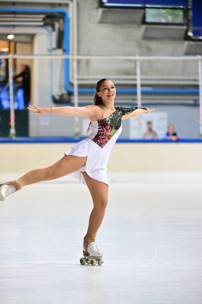 Per Isabella – pattinatrice da ragazza, poi una lunga pausa fino alla ripresa degli allenamenti per recuperare dopo una brutta forma di Covid – la sfida è stata quella “di dovermi confrontare con atlete di 18 – 20 anni, in assenza di una categoria master, con un programma di gara al livello di atlete professioniste. Sarebbe stato meno stressante emotivamente confrontarmi con atlete della mia stessa età, ma a questo punto credo che con la determinazione, la costanza, un po’ di sacrificio fisico, i risultati arrivano.