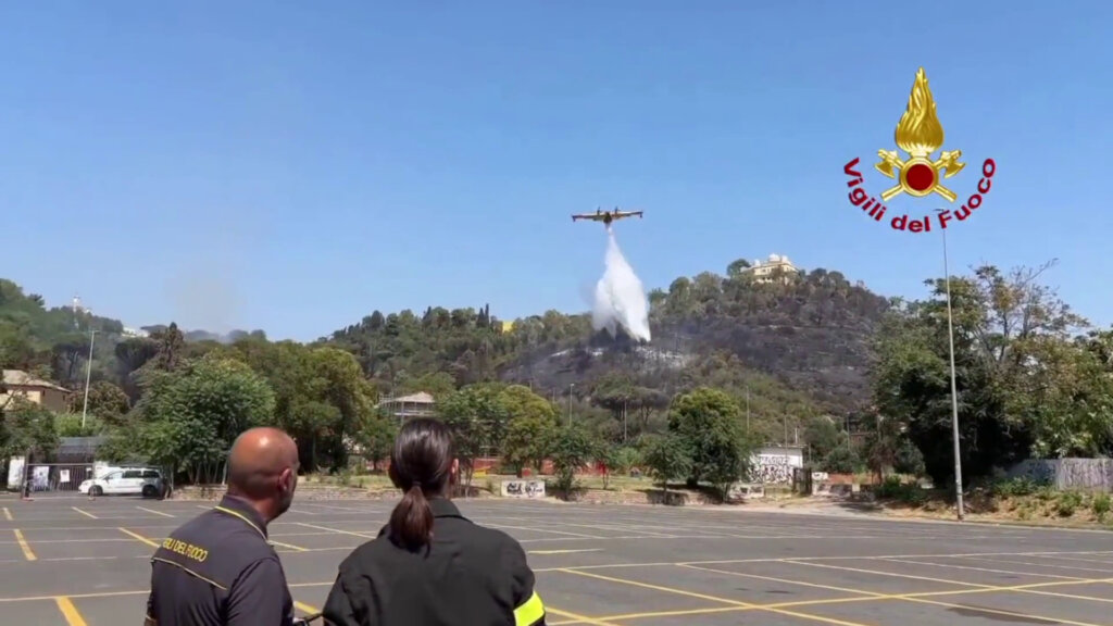 Roma, la bonifica di vigili del fuoco e canadair dopo l’incendio