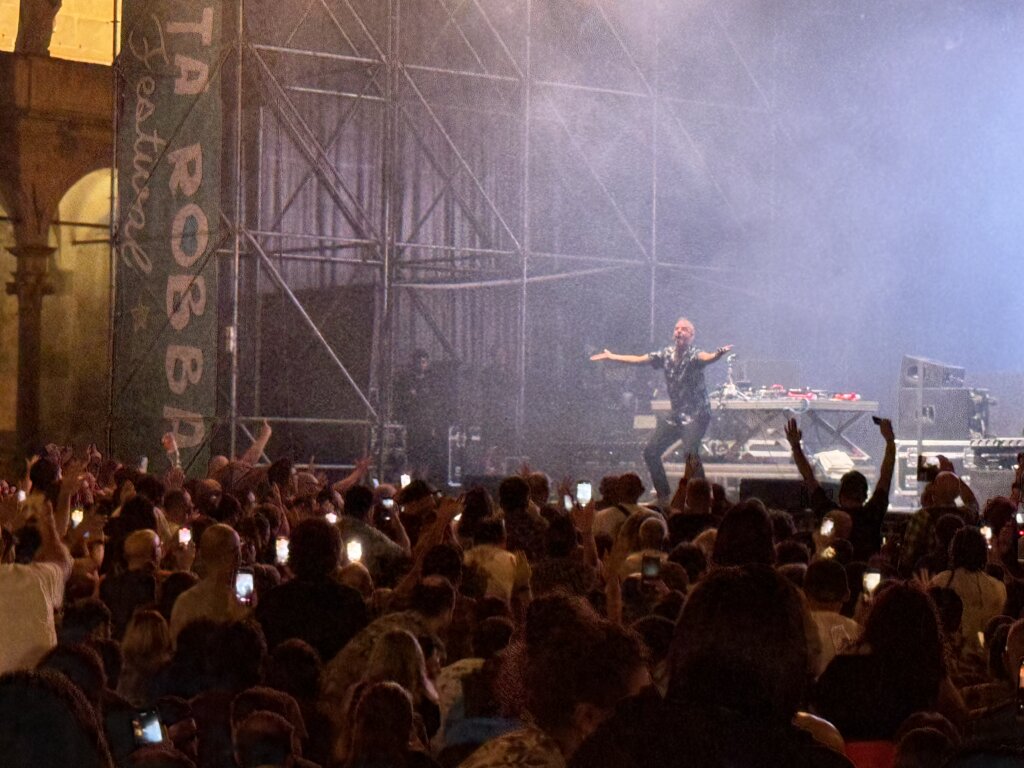 Il dj ha mixato insieme generi di tutti i tipi, dalla musica spagnola, passando per il pop inglese e l’elettronica, interagendo con il pubblico e, tramite lo schermo led alle sue spalle, ha invitato a non usare i telefoni e godere del momento.