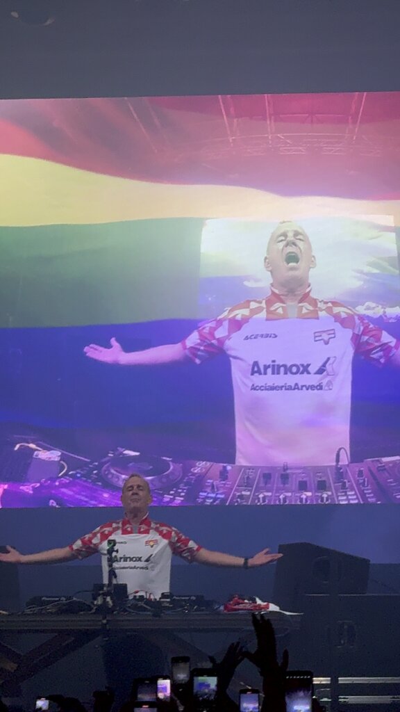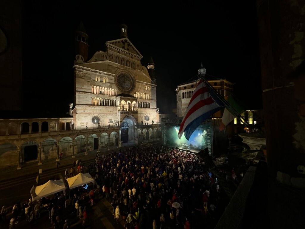 Con uno spettacolo in crescendo, l’artista ha chiuso l’esibizione con i suoi due pezzi più iconici: “right here, right now” mixata con “Bohemian Rhapsody“ dei Queen e “Rockafeller Skank”, il tutto indossando la divisa da trasferta della Cremonese.