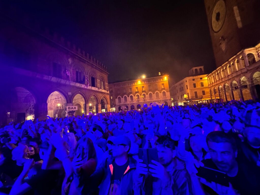 Tra il pubblico persone di tutte le età tra cui anche una famiglia scozzese composta da papà e due figli. Proprio il padre ha raccontato prima del concerto l’emozione della serata: “Sono qui con i miei due figli, il maschio è al suo primo concerto, siamo sotto il palco in questa bellissima piazza italiana ed è davvero incredibile”.