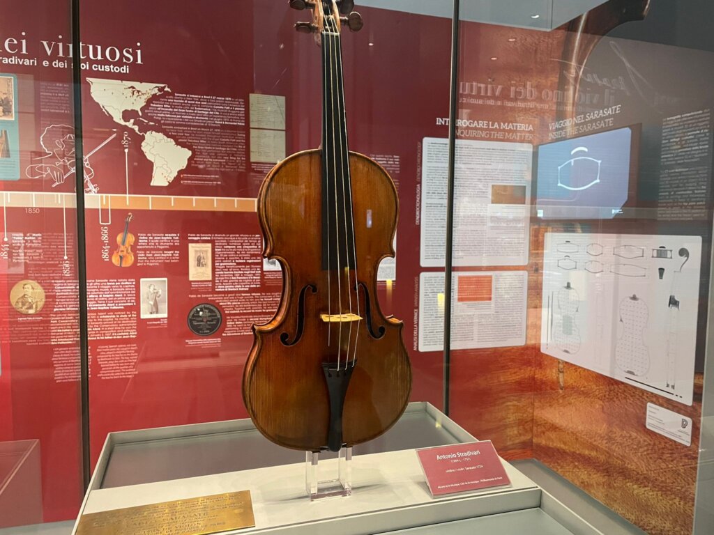 “Lo strumento in sé è uno strumento molto rappresentativo di una parte dell’opera di Stradivari che non è rappresentata dagli strumenti che abbiamo qui al Museo del Violino quindi è un’opportunità per tutti di scoprire altre facce del lavoro di Stradivari” racconta Riccardo Angeloni curatore delle collezioni del Museo. “Questo strumento si connette benissimo col nostro patrimonio, col patrimonio che già conserviamo e il senso di questa mostra è proprio quello che creando una connessione fra Istituzioni e poi tra persone, si possono creare anche le connessioni fra il patrimonio che conserviamo, e qui in questa mostra, questo è esplicitato per esempio dalla corrispondenza fra la forma PG di Antonio Stradivari che noi conserviamo e il profilo delle fasce di questo strumento che sono stati esaminati attraverso tecniche di diagnostica e che corrispondono quindi un ritorno qui a Cremona anche dal punto di vista dello studio e delle informazioni di questo strumento.