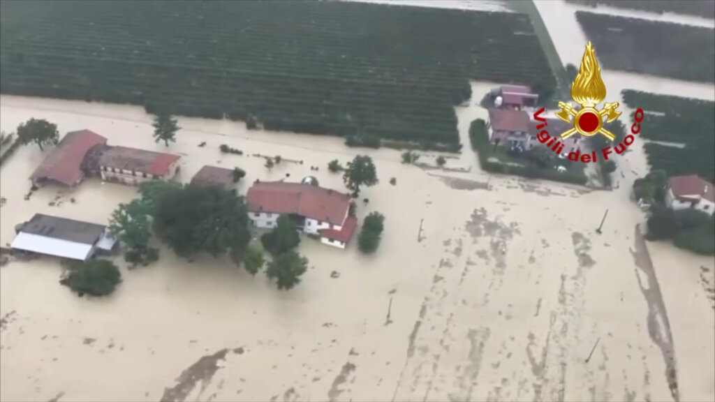 RAVENNA (ITALPRESS) – Due elicotteri dei vigili del fuoco in azione a Ravenna per soccorsi alla popolazione. Tra Bagnacavallo, Lugo e Cotignola recuperate con l’elicottero 5 persone bloccate in casa per l’innalzamento del livello dell’acqua.