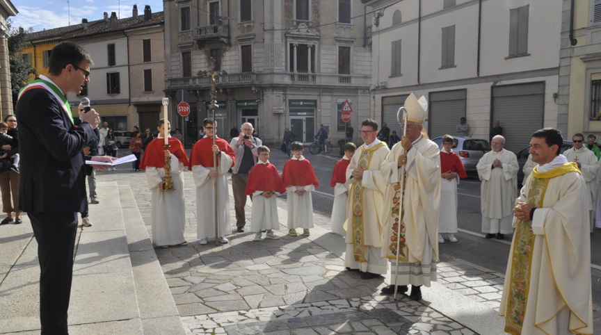 Drappi bianchi e rossi sulla facciata della chiesa di San Siro, a Soresina, che nella mattinata di domenica 6 ottobre, ha accolto con gioia il nuovo parroco don Andrea Bastoni. Rivolgendosi a monsignor Napolioni il sindaco di Soresina Alessandro Tirloni ha rassicurato: “Non posso dimenticare l’importanza della collaborazione tra le istituzioni civili e religiose alla ricerca del bene comune. In questa prospettiva posso assicurarle che l’Amministrazione comunale lavorerà fianco a fianco con don Andrea e i suoi collaboratori per promuovere valori di solidarietà, giustizia e pace”.