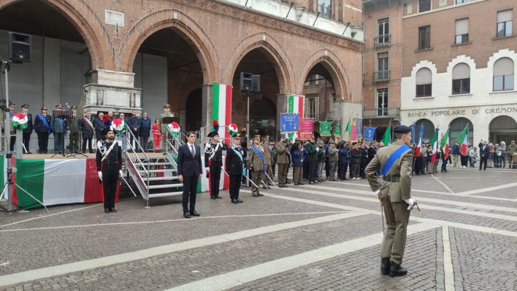 La giornata è tornata ad essere festa nazionale, come ricorda il ministro della Difesa Crosetto nel messaggio diffuso in mattinata e letto anche dal palco cremonese, col preciso scopo di rafforzare concetti troppo spesso disattesi. Il Prefetto Antonio Giannelli nella sua allocuzione ha parlato direttamente alle rappresentanze dei vari Corpi schierati davanti al palco d’onore: “A loro – ha detto tra l’altro -è particolarmente affidato il compito di custodire i valori e la tradizione di civiltà e di difenderli sia in patria che nei diversi uffici e contesti nei quali sono chiamati ad operare”.