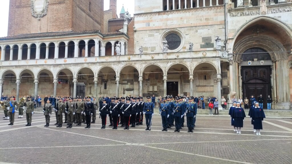 Un 4 novembre dal sapore particolare, quello celebrato anche a Cremona questa mattina in piazza del Comune, per ricordare l’impegno delle Forze Armate non solo nella difesa dei confini, ma soprattutto nelle missioni di pace e nella costruzione dello spirito di appartenenza ad una comunità attraverso l’agire quotidiano, l’impegno civile e il senso delle istituzioni, in quella che originariamente era la Festa della Vittoria nella I Guerra Mondiale.