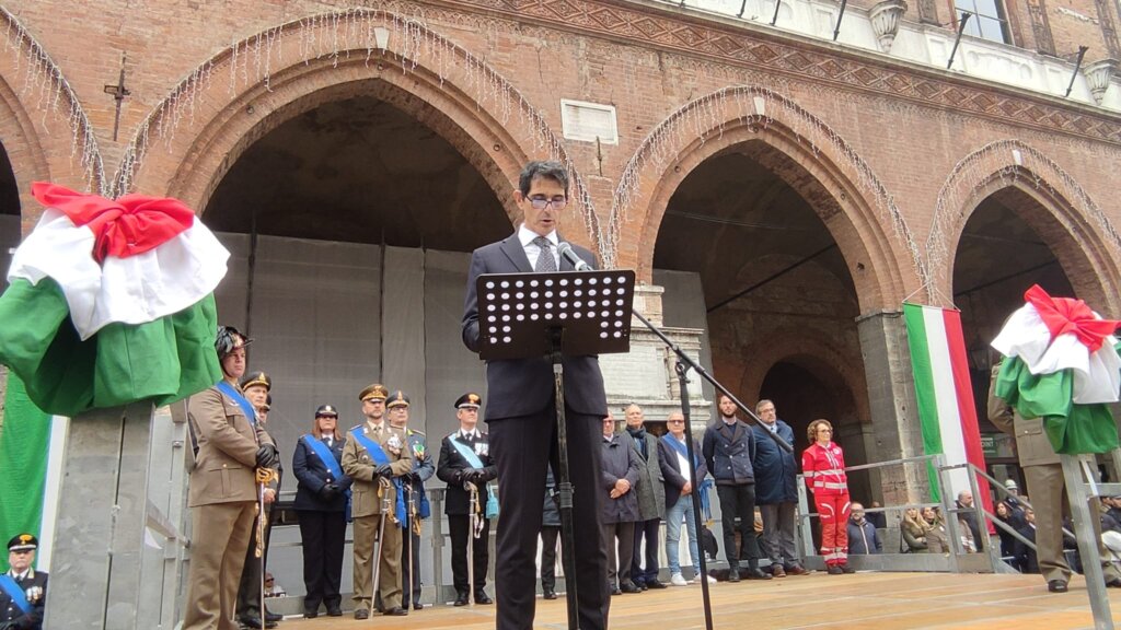 L’intervento del prefetto Gannelli è stato preceduto dalla lettura del Bollettino della Vittoria redatto all’epoca dal generale Diaz e dei messaggi del Capo dello Stato Mattarella e del Ministro della Difesa Crosetto.