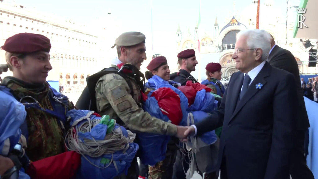 VENEZIA (ITALPRESS) – Il presidente della Repubblica, Sergio Mattarella ha celebrato la festa delle forze armate in Piazza San Marco, a Venezia. Dopo aver ascoltato l’Inno nazionale, il capo dello Stato, accompagnato dal ministro della Difesa e dal capo di Stato Maggiore della Difesa, ha passato in rassegna lo schieramento.