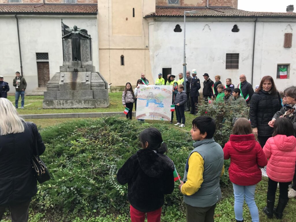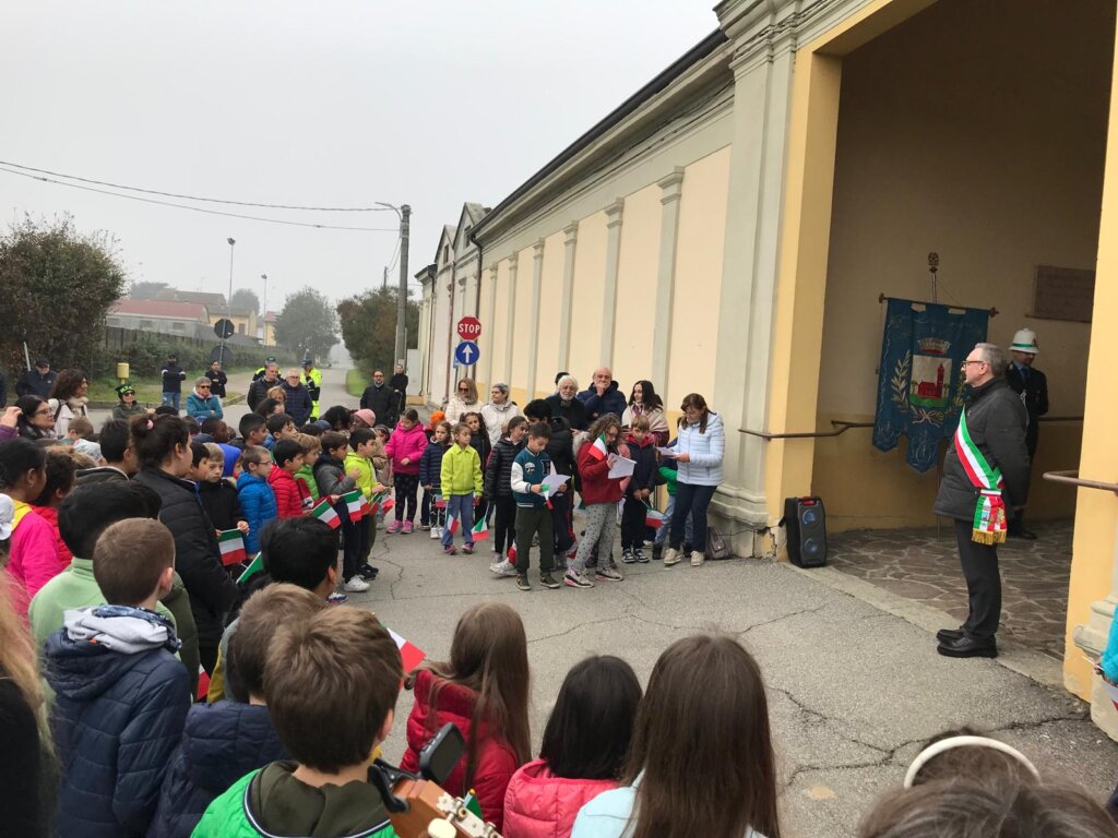I bambini della scuola di San Daniele e Pieve d’Olmi protagonisti della celebrazione del 4 novembre a Pieve d’Olmi, alla presenza del Sindaco di Sospiro Fausto Ghisolfi, della consigliera di Stagno Lombardo Elena Cattadori, della rappresentante del Comune di Malagnino Paola Turini, e della rappresentanza del 10mo Reggimento Genio Guastatori di Cremona, con la partecipazione dell’Associazione Combattenti e Reduci di Castelleone.
