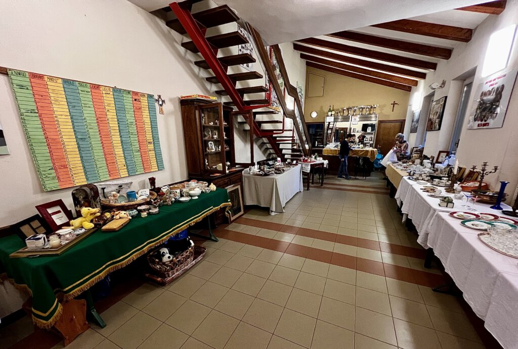 A pochi passi da qui, nell’oratorio di s. Agostino di via Breda, le volontarie hanno allestito un’esposizione di oggetti più o meno antichi: servizi da tavola, ceramiche, bellissime camice da notte e vesti ricamate, orecchini. “Sono oggetti che i nostri parrocchiani hanno donato nel corso del tempo e destinati alla pesca di beneficenza”, ci racconta Roberta Benzoni. “Da qualche anno li mettiamo in esposizione e con un’offerta si può portare a casa qualcosa, contribuendo a sostenere le attività assistenziali dell’unità pastorale“. L’esposizione resterà aperta anche nel fine settimana del 16 e 17 novembre.