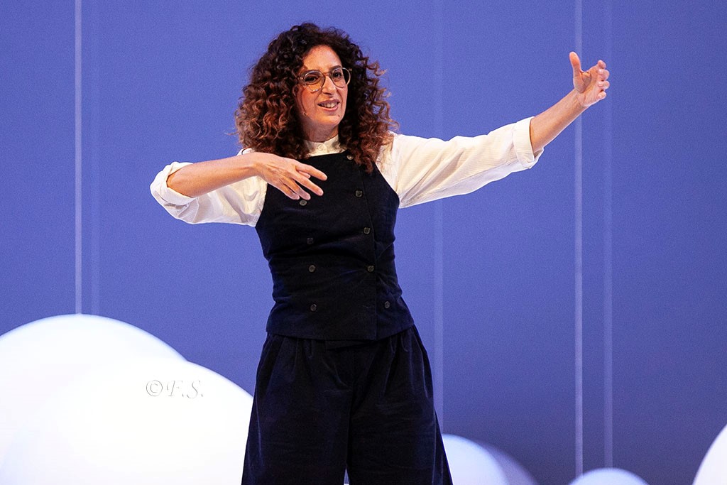 “Ritorno sui palchi dei teatri piena di desideri, racconti e interrogativi”: attacca la one-woman show. E il suo primo desiderio è quello di ritrovare il suo pubblico, tra platea e palchetti, dalle prime file alle retrovie, per riconnettersi al mondo reale.
