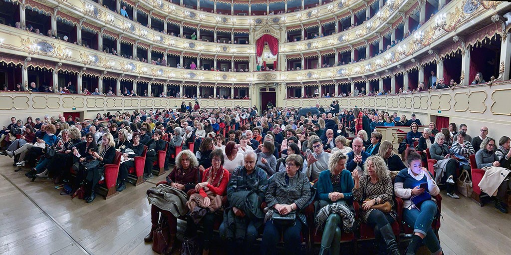 Una continua interazione tra palco e platea, che cattura il Ponchielli in un viaggio comico e a tratti dissacrante.