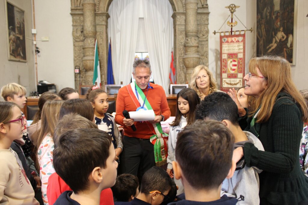 Dopo che questi giovanissimi allievi si sono congedati, hanno preso posto nella Sala dei Quadri altri bambine e bambini, per l’esattezza alunne e alunni delle classi I A e I B della Scuola primaria Capra Plasio, con i quali è stato condiviso il tema del diritto all’istruzione, mentre le bambine e i bambini che frequentano la classe IV B, sempre della Scuola primaria Capra Plasio, si sono soffermati su diritto e dovere ad avere spazi adeguati, puliti e funzionali per apprendere.