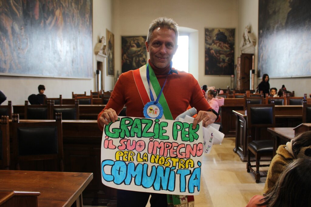 Prima dei saluti finali, è stato proiettato un breve filmato di Unicef Italia. Infine, i bambini, accompagnati dalle maestre che li hanno seguiti in questo percorso, hanno donato al Sindaco gli elaborati da loro realizzati.