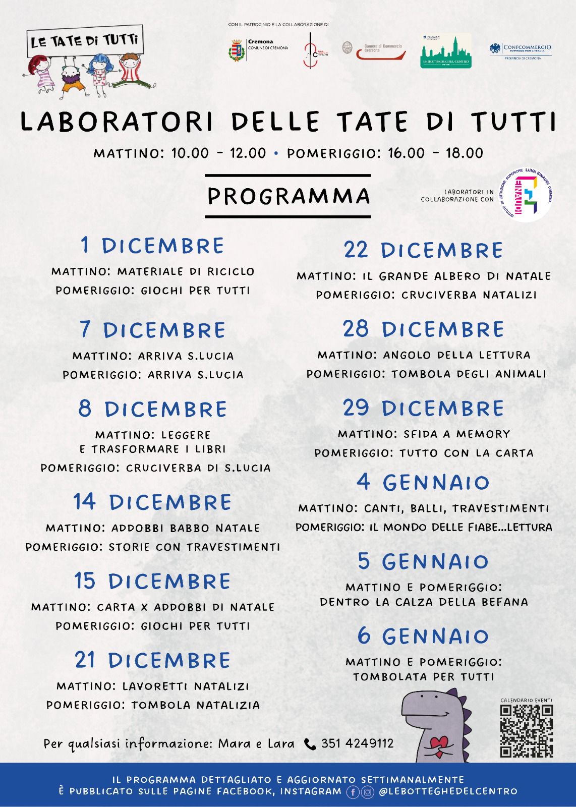 Un magico “Igloo” accoglierà bambini e famiglie presso i giardini di piazza Roma. All’interno dell’igloo è stata pensata un’area bimbi dove i genitori potranno lasciare i propri figli in tranquillità, per farli partecipare a laboratori creativi organizzati da “Le Tate di Tutti” e dall’Istituto Einaudi durante i weekend, da domenica 1° dicembre sino al 6 gennaio. Questa scelta vuole offrire alle famiglie un luogo sicuro e accogliente, dove i più piccoli possano divertirsi e imparare mentre i genitori si godono una passeggiata o lo shopping natalizio. Nel calendario troveranno spazio anche attività ludiche con “Urban Bees” e “Energia Ludica”.
