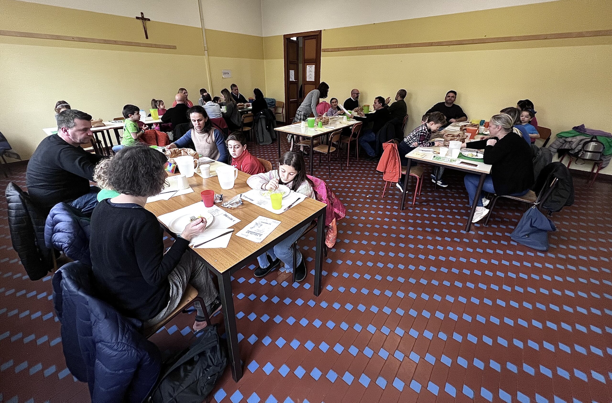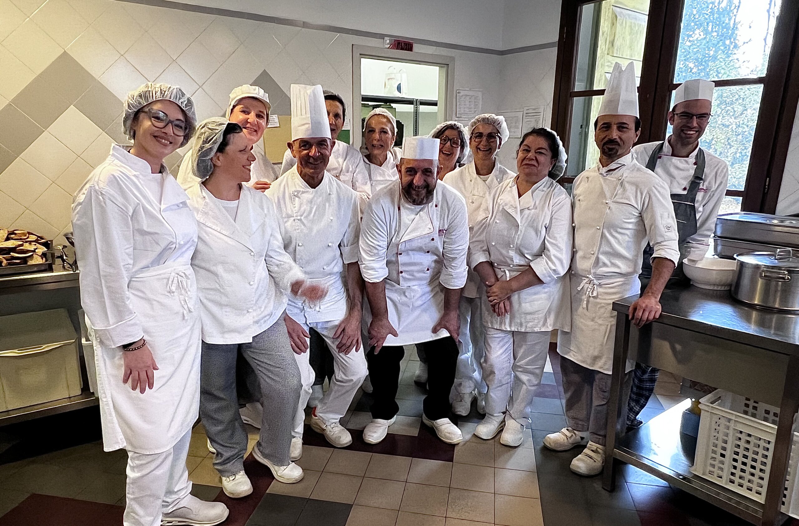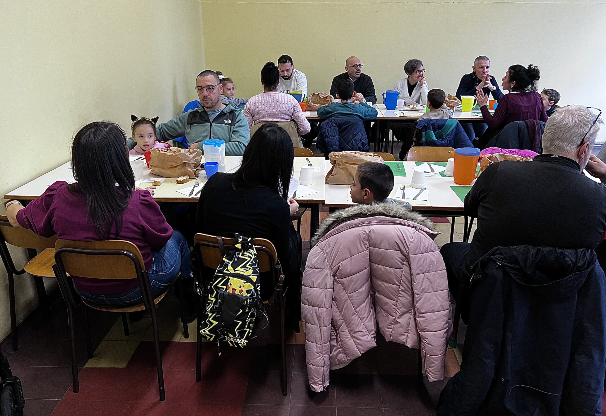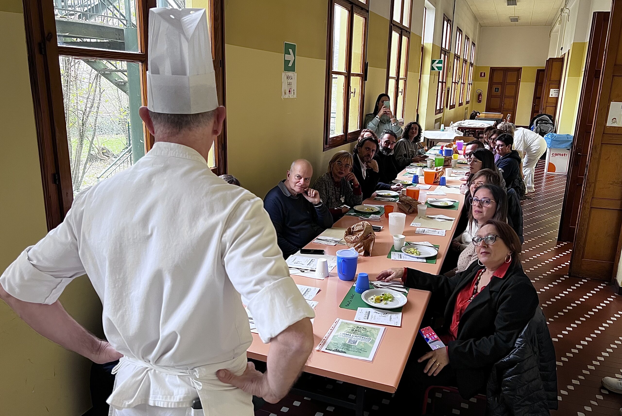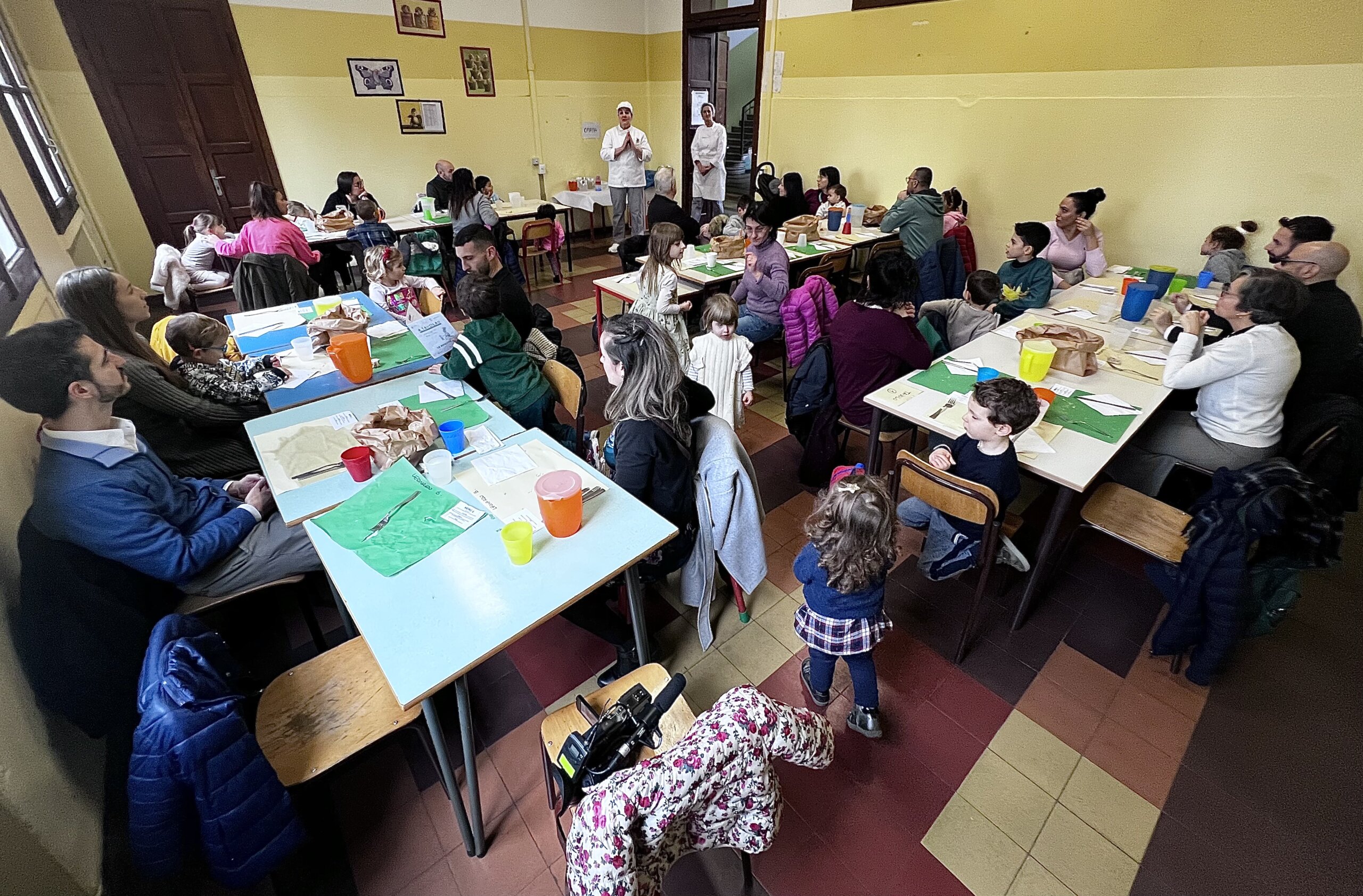 Tutti puntuali, alle 12:30 gambe sotto il tavolo: si mangia! Dopo il successo dell’edizione della scorsa primavera, le cuoche e i cuochi comunali di Cremona insieme con la ditta di ristorazione Camst hanno invitato bambini e soprattutto i genitori a scuola per un pranzo insieme.
