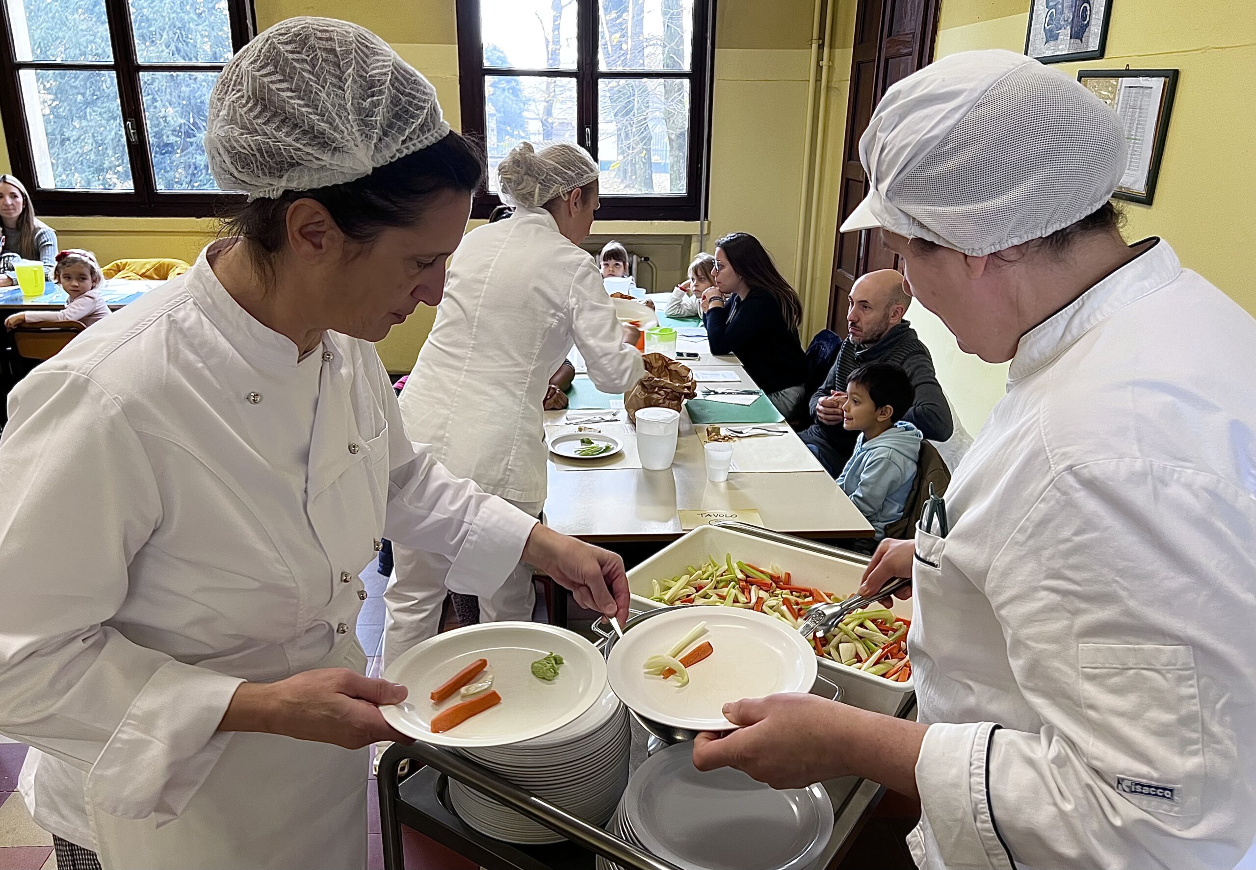 Siamo alla scuola primaria Stradivari, in via San Bernardo a Cremona. Due i menu proposti, entrambi antipasto, bis di primi, secondo e dolce, con tanto di saluto dello chef. Genitori e bambini, questa volta fin dall’asilo nido, hanno potuto prenotare e scegliere per tempo. L’occasione per permettere, soprattutto ai genitori, di assaggiare ciò che i loro figli mangiano tutti i giorni, da qui la scelta di organizzare questa giornata in un sabato.