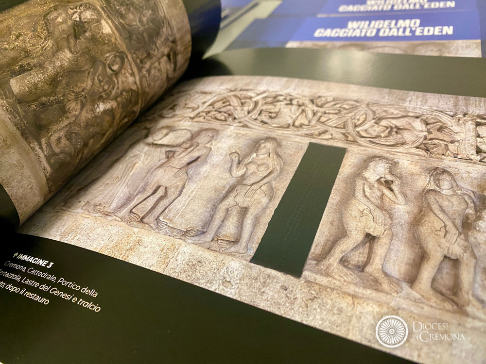 Il volume, primo di una collana dedicata alle opere del Polo museale della Diocesi di Cremona, ed edito TeleRadio Cremona Cittanova, approfondisce le due lastre del Genesi e tralcio abitato situate sotto il portico della Bertazzola sulla facciata della Cattedrale. Una pubblicazione agile, che può essere acquistata nel bookshop del Museo Diocesano di Cremona.