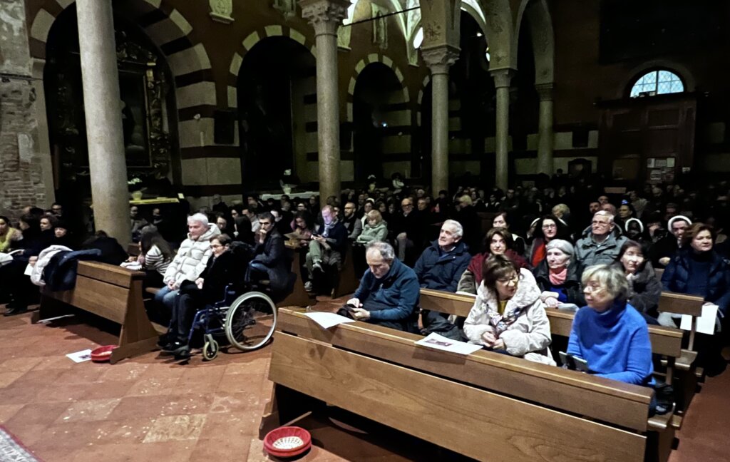 Il complesso vocale accompagnato all’organo da Alessandro Manara e impreziosito dalla voce di Enrica Fabbri (soprano) e dalla tromba di Giuseppe Riccucci ha proposto, come da tradizione, il suo concerto natalizio con la direzione del maestro Federico Mantovani. Per l’occasione, come anche in anni precedenti, il Polifonico è stato affiancato, in alcuni momenti, dal coro di voci bianche dell’Istituto Paritario “Beata Vergine” (maestro preparatore Silvia Galli): un segno di innocente candore e una speranza di vita e di pace in questi tempi segnati da sangue e distruzione.