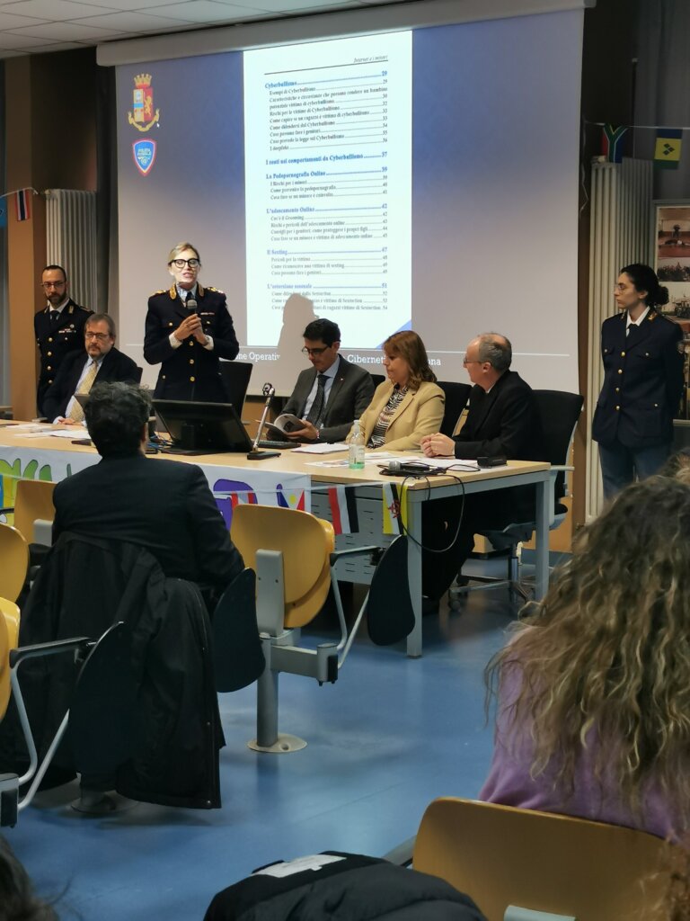 Ieri pomeriggio all’istituto Ghisleri di Cremona, nell’aula magna intitolata all’agente della Polizia di Stato Stefano Villa, deceduto in servizio durante un’attività antirapina, si è tenuta la presentazione della guida pratica per i genitori improntata a chiarire i rischi connessi all’uso di Internet e dei social da parte dei minori dal titolo “Internet e i minori – Cosa fare quando un minore è vittima di reati online”, ideata dal personale della Sezione Operativa per la Sicurezza Cibernetica di Cremona.