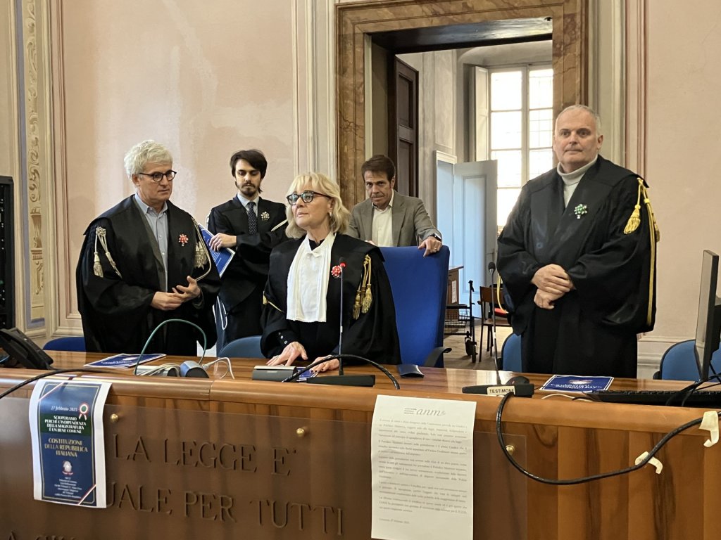 Tutti con Costituzione in mano e coccarda tricolore sulle toghe, come era successo anche in occasione della cerimonia di apertura dell’anno giudiziario a Brescia, quando i magistrati dell’Anm erano usciti in silenzio dopo che aveva preso la parola Claudia Eccher, membro laico del Csm. Ed erano rimasti fuori anche durante l’intervento del rappresentante del ministro Nordio.